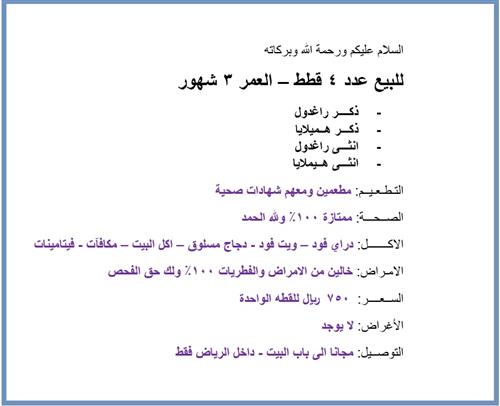 الموقع يُحذّر من تحويل الأموال وينصح بالتعامل المباشر مع المعلن , كما ان الموقع يخلي مسئوليته عن اي عملية تجارية مع المعلن , للاهمية قراءة الشروط والأحكام