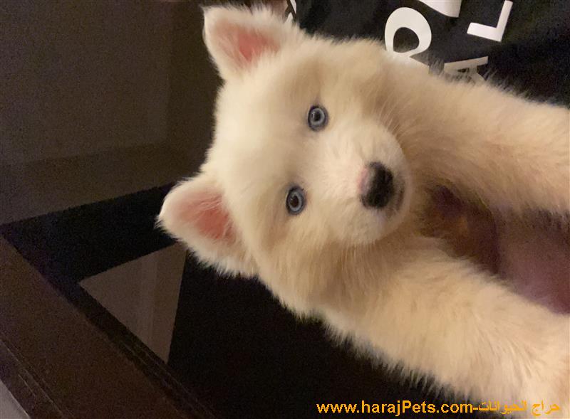 كلب هاسكي للبيع العمر ٦٠ يوم مع قفص كبير للبيع