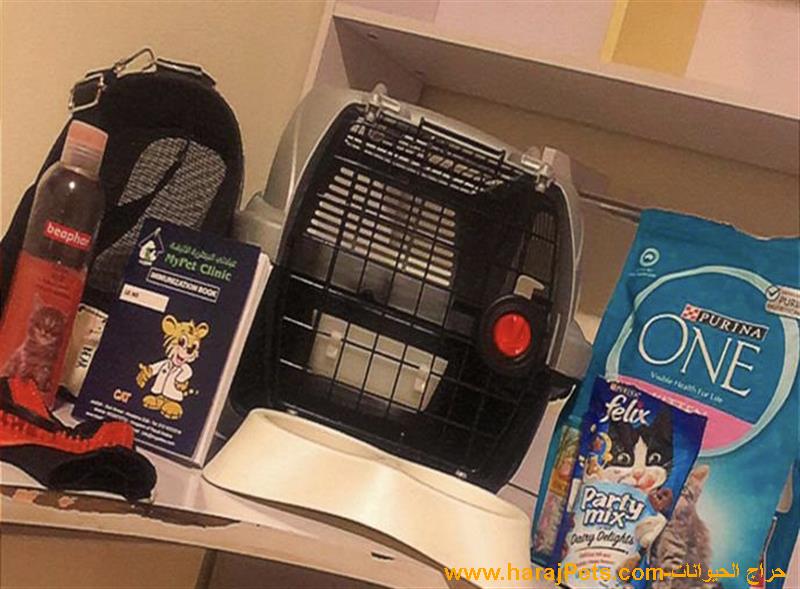 اغراضه: صندوق خاص وشنطة متنقلة وايضا ليتر بوكس مع مغرفة للتنظيف والاكل