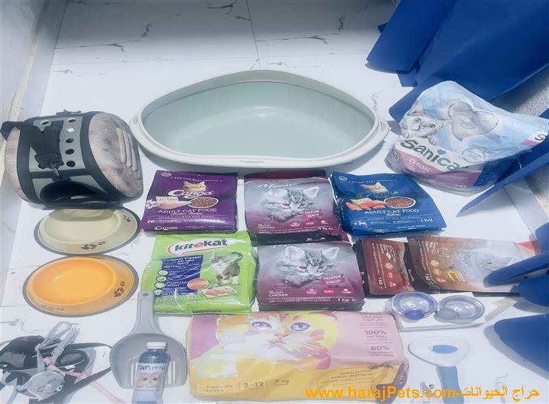• أكياس طعام قطط متنوعة (Cango, Meow, Sanica, KiteKat) بأوزان بإجمالي تقريبا 7 كيلو