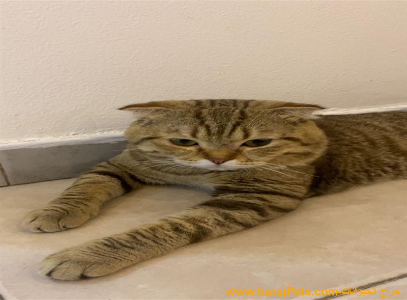 سلام عليكم للبيع القط السكوتش فولد سليم ونظيف وصحته ميه بالميه معه اغراضه كامله اكل وكل شي اغراض الليتر بوكس اموره طيبه وحركي لعوب