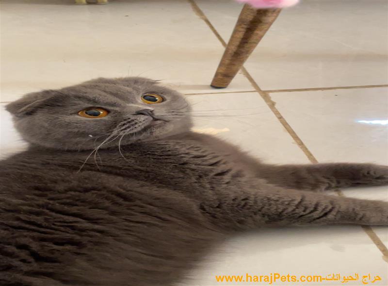 مواصفات القطة : عيون دائرية واسعة جبهه عريضة و مستديرة أذن مطوية