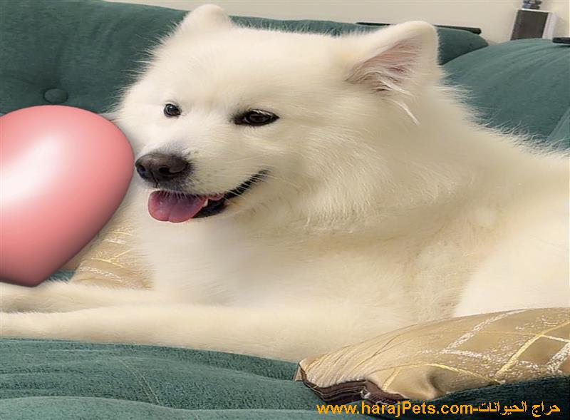 كلب انثى سامويد سلالة سيبريا عمرها ٣ سنوات محبة جدا للأطفال وأليفة كلبة بيت اجتماعية وبصحة ممتازة يوجد معها جميع اكسسوارتها ويوجد معها دفتر تطعيماتها