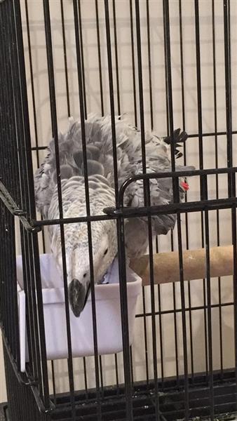 كاسكو افريقي العمر بحدود السنه و نص الولافه ٧٠٪ متكلم من كلامه بابا السلام عليكم راسك بوسه و يبوس يعقوب سلطان الطير في فتره تبديل ريش الطير يقبل المسح على الراس و حار و يلعب كثير بالقفص