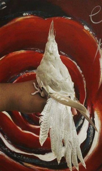 الطير صغير عمر ومعتمد على نفسه وجدا جدا اليف مايعرف العض ابد ومناسب جدا للاطفال, الطير يطلع على اليد ويتنقل من يد ليد وياكل من اليد