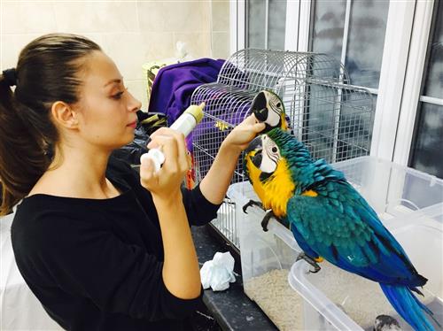 Hand reared baby blue and old now 4 months old very tame goes to everyone contact me if interested. Please note I have 2 babies and the price below is for each not together